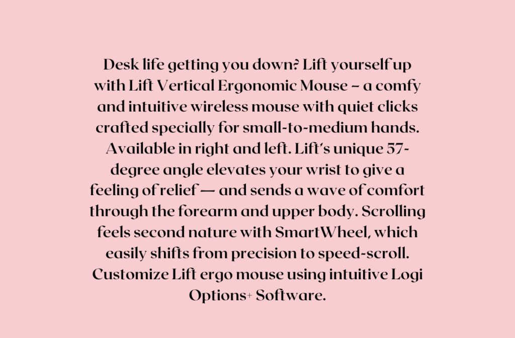 I don’t know why I waited so long to get her? She is amazing! Logitech – Lift Vertical Wireless Ergonomic Mouse with 4 Customizable Buttons! No more pain from crafting too long!